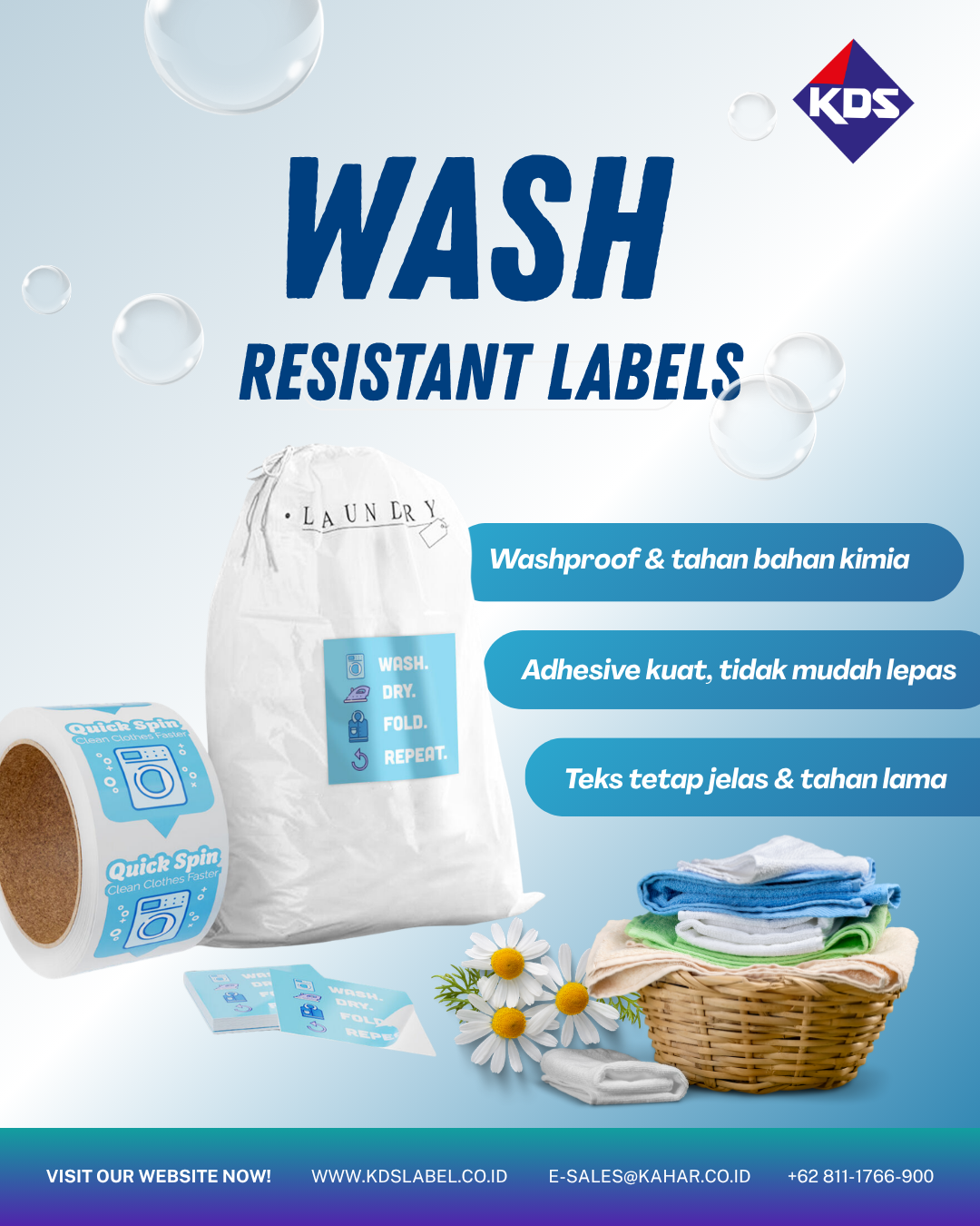 Wash resistance label adalah jenis label yang dirancang menggunakan material dan adhesive khusus agar tahan terhadap proses pencucian, baik manual maupun mesin. Label ini tidak mudah luntur, pudar, atau terlepas meskipun melalui siklus wash berulang.
